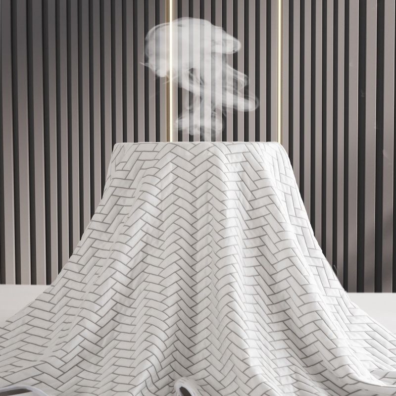 It balances the instant cooling of entry-level coated fabrics and the durability of high-molecular industrial fabrics, without their flaws (short lifespan or stiff texture). Ideal for daily use like bedding, with long-lasting coolness even after washes.The fabric contains 55% medium-molecular cool-touch material, which boasts excellent thermal conductivity. It quickly draws away surface heat from the skin the moment it makes contact, creating an instant cooling sensation.